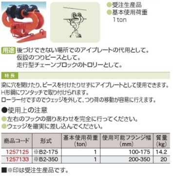 トロリークランプH形鋼用B2